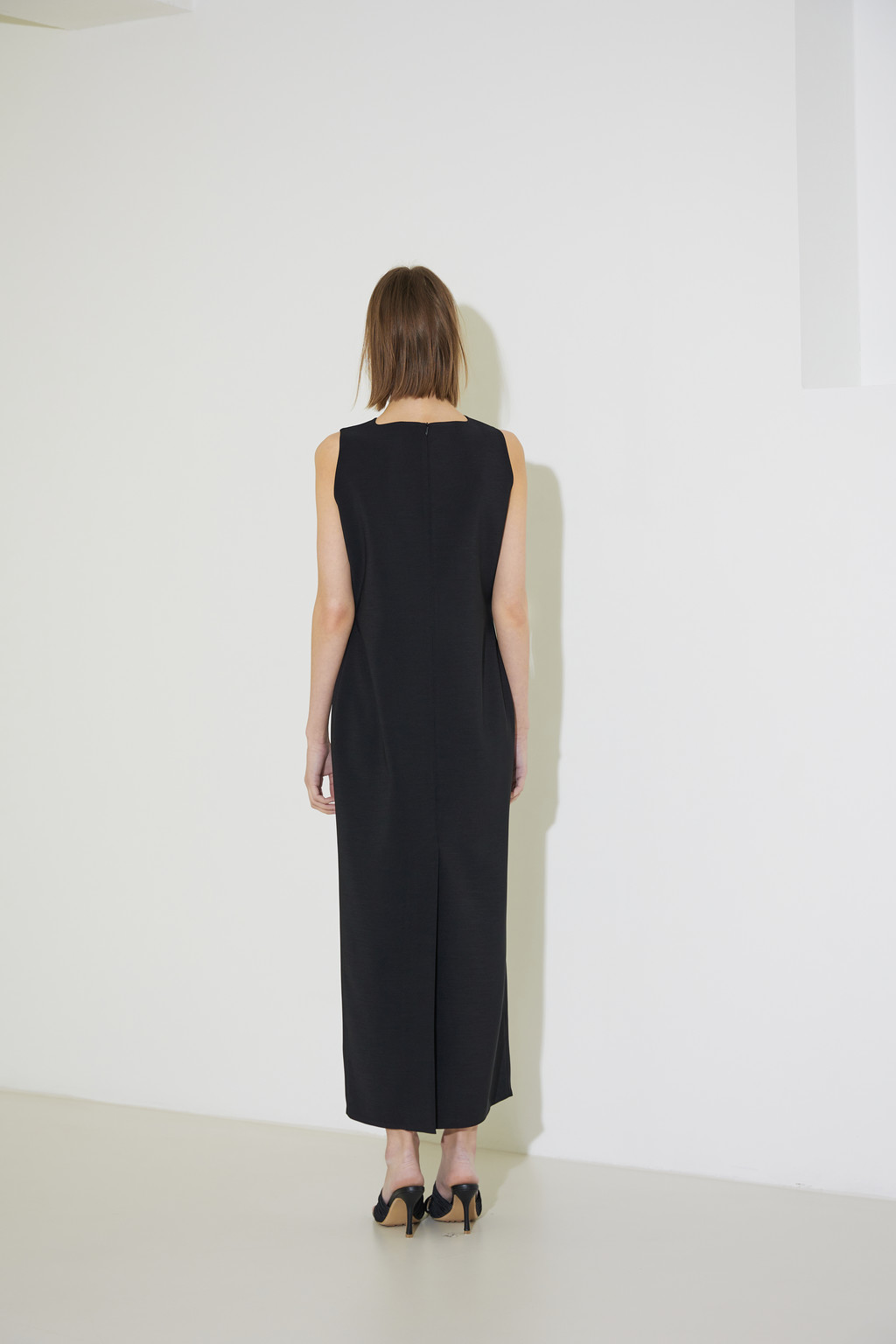 EKHON DROP MOSCATO DRESS TRUFFLE BLACK