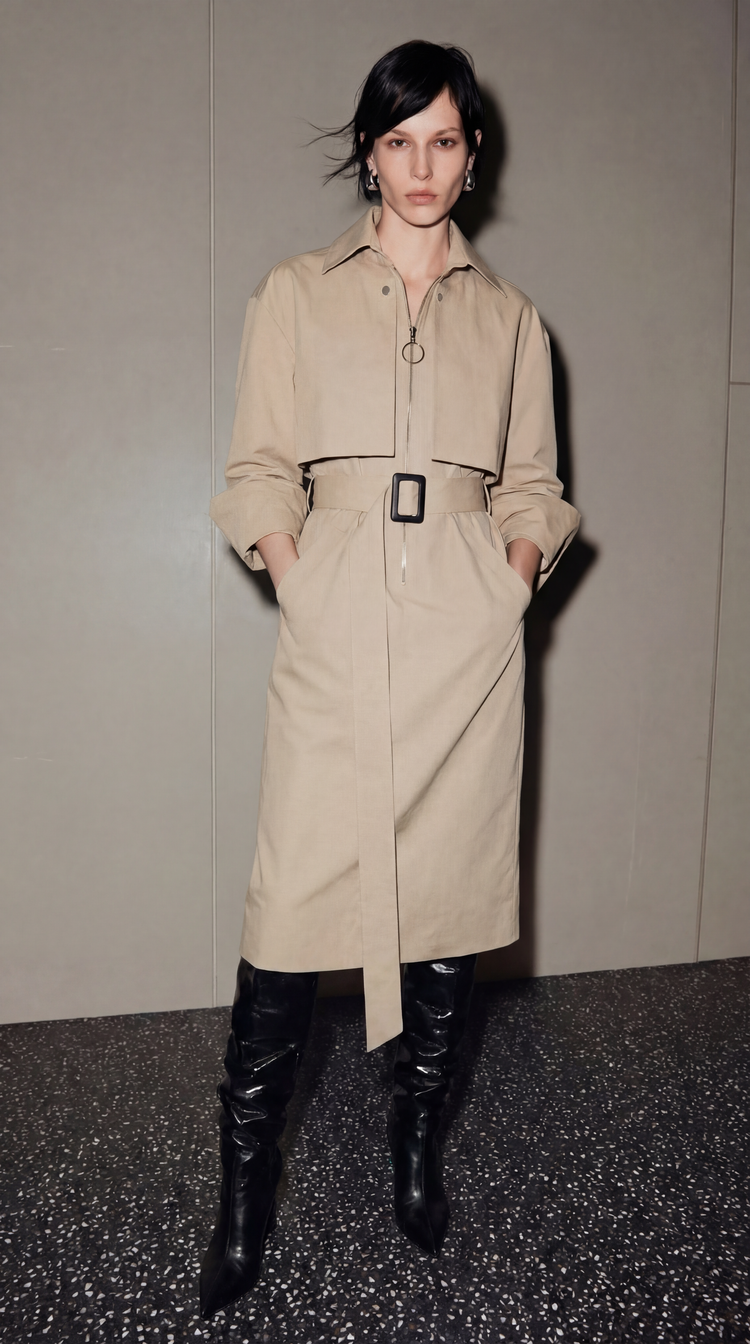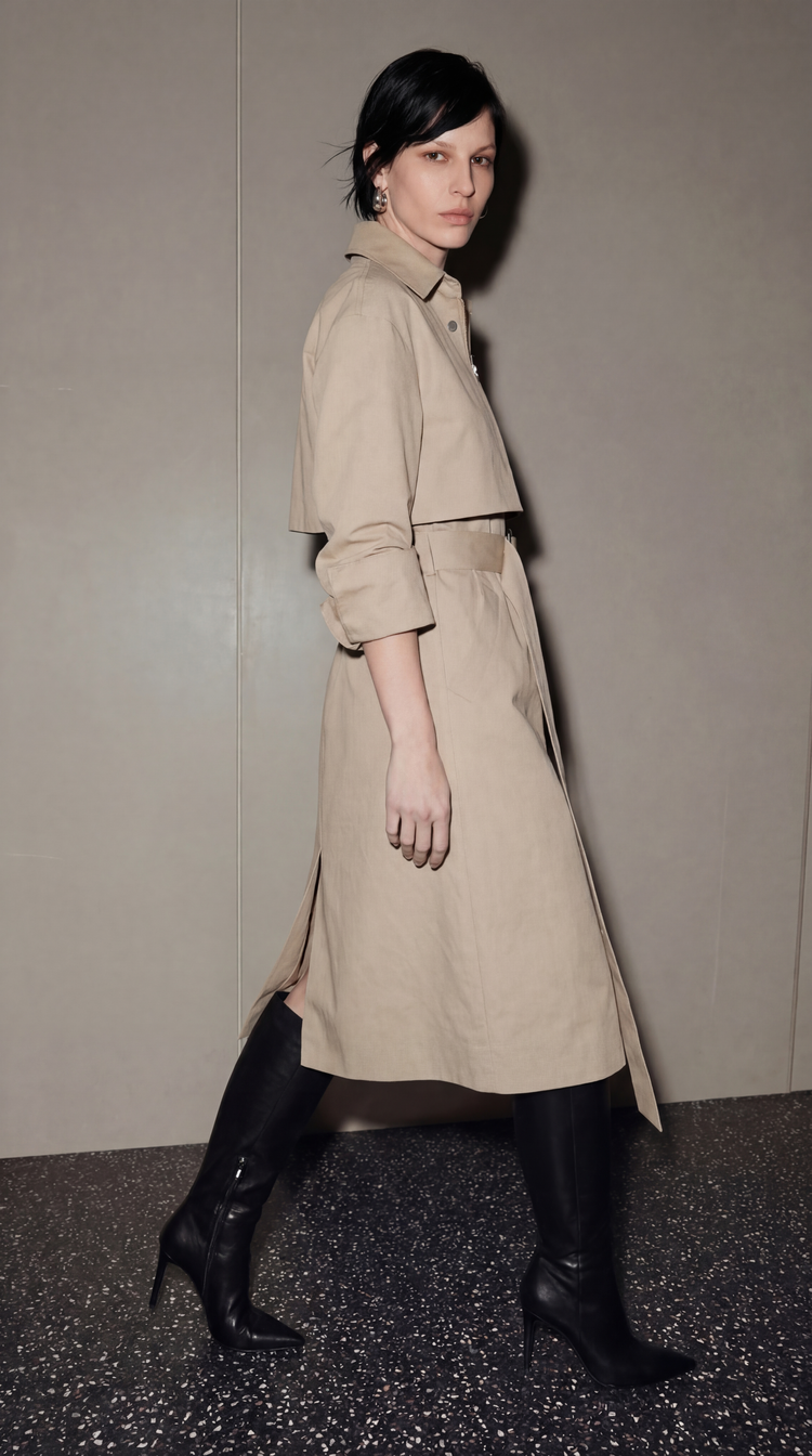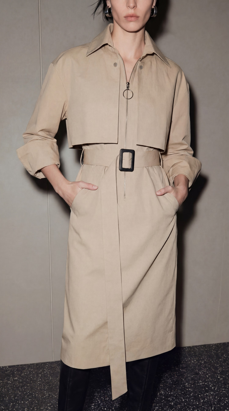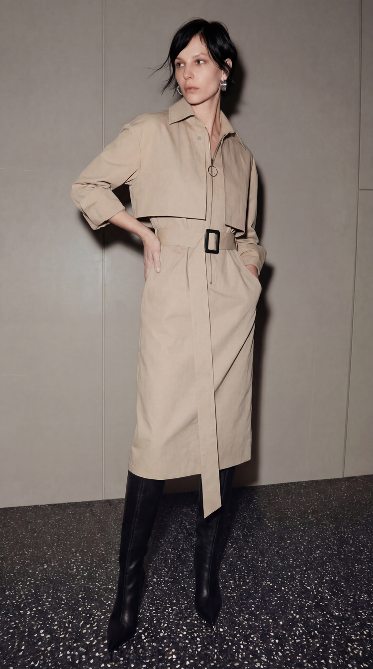 EKHON MODERN TRENCH DRESS BEIGE