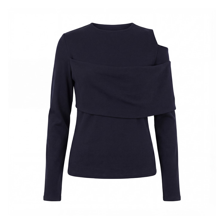 EKHON LAYERED SHOULDER SLIT COTTON KNIT NAVY