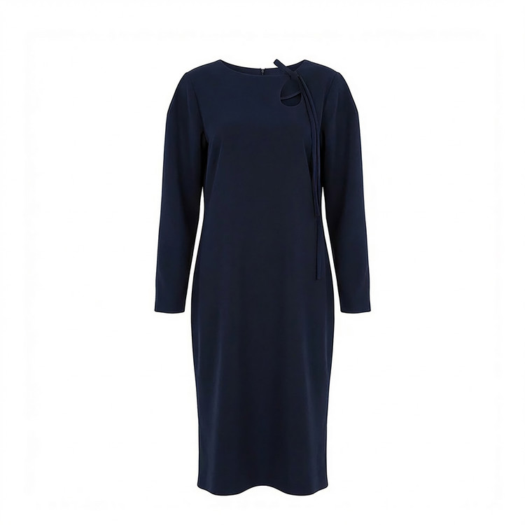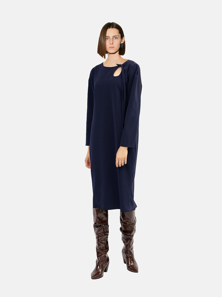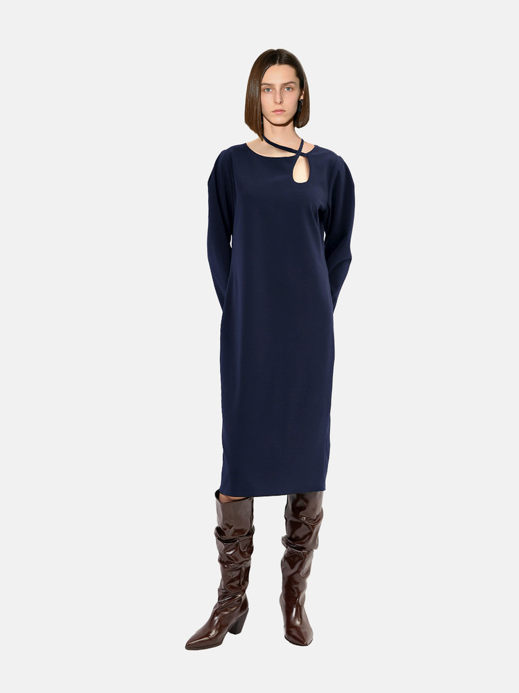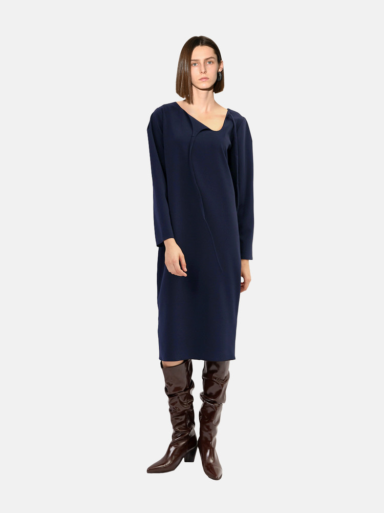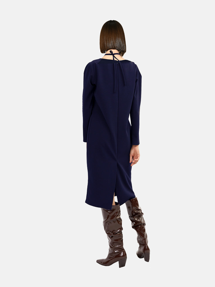 Long sleeve mid-length dress in navy.