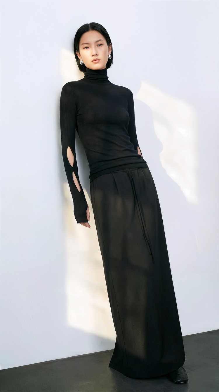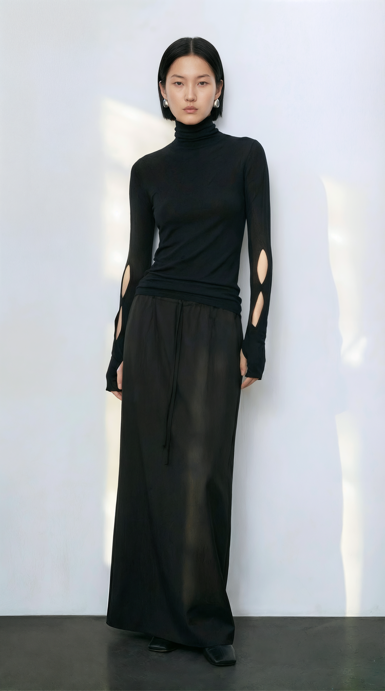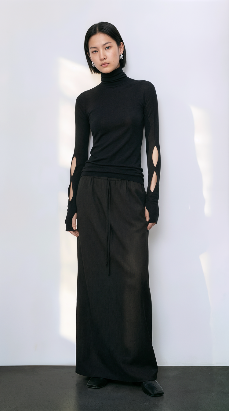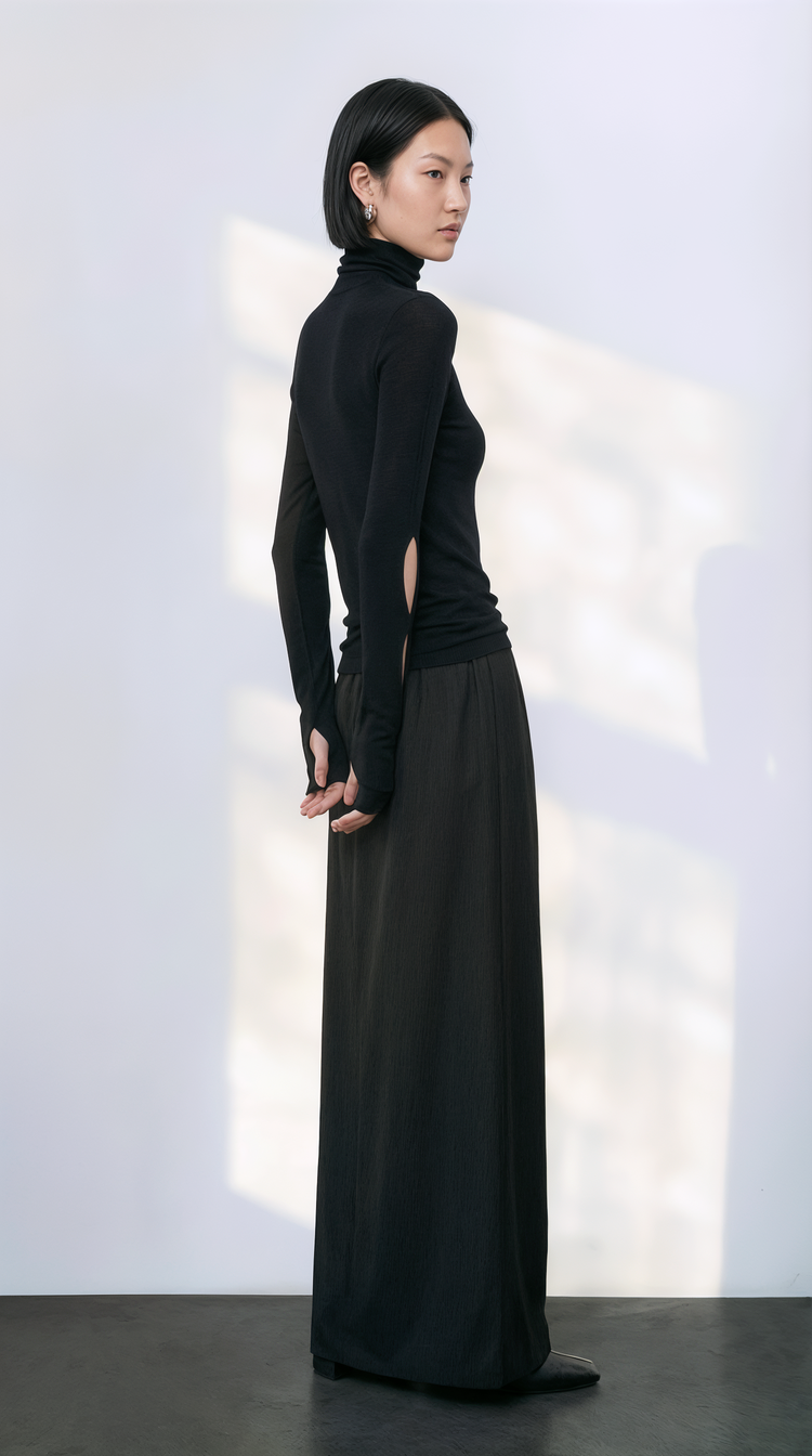 EKHON SLIT BABY WOOL TENCEL TURTLENECK BLACK