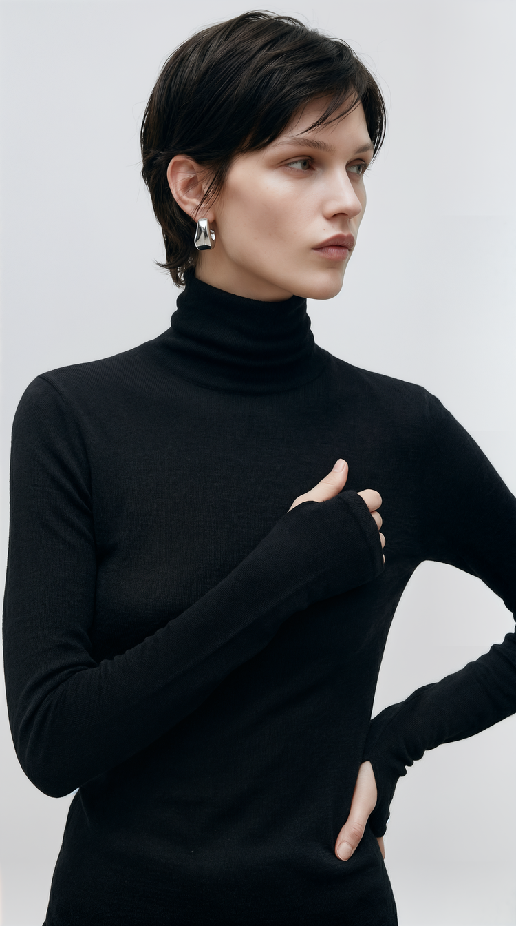 Zipper eliminates the inconvenience of smudging makeup and damaging hair styles when wearing turtlenecks.