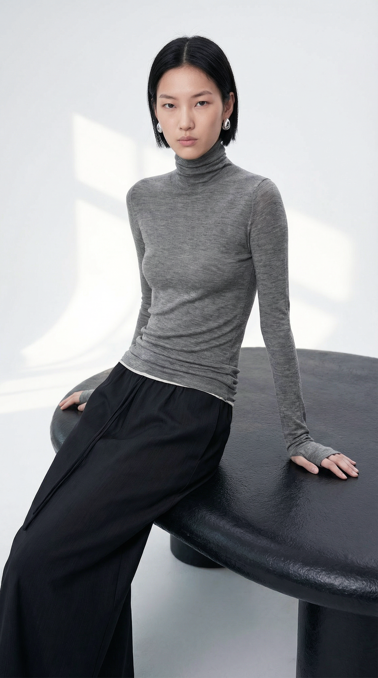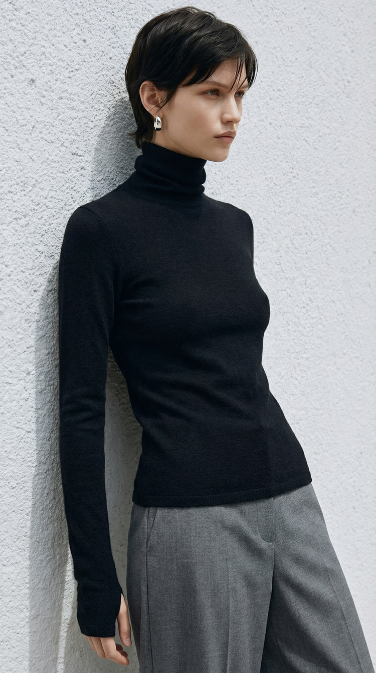 Zipper eliminates the inconvenience of smudging makeup and damaging hair styles when wearing turtlenecks.