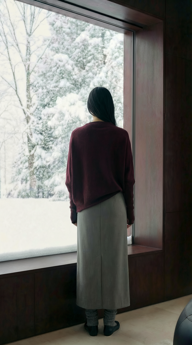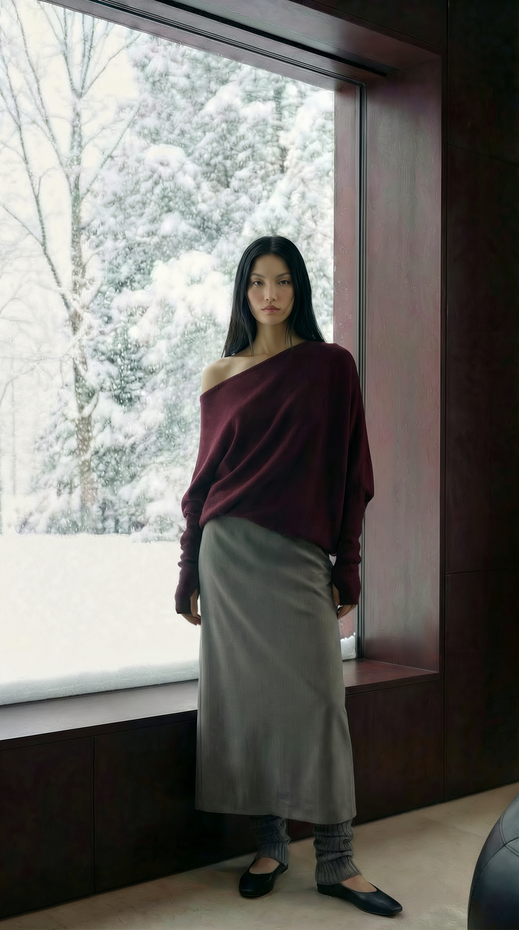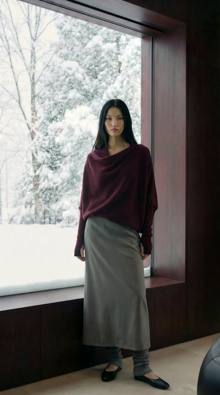 EKHON WASHABLE WOOL TENCEL HYBRID DRAPED TOP BURGUNDY