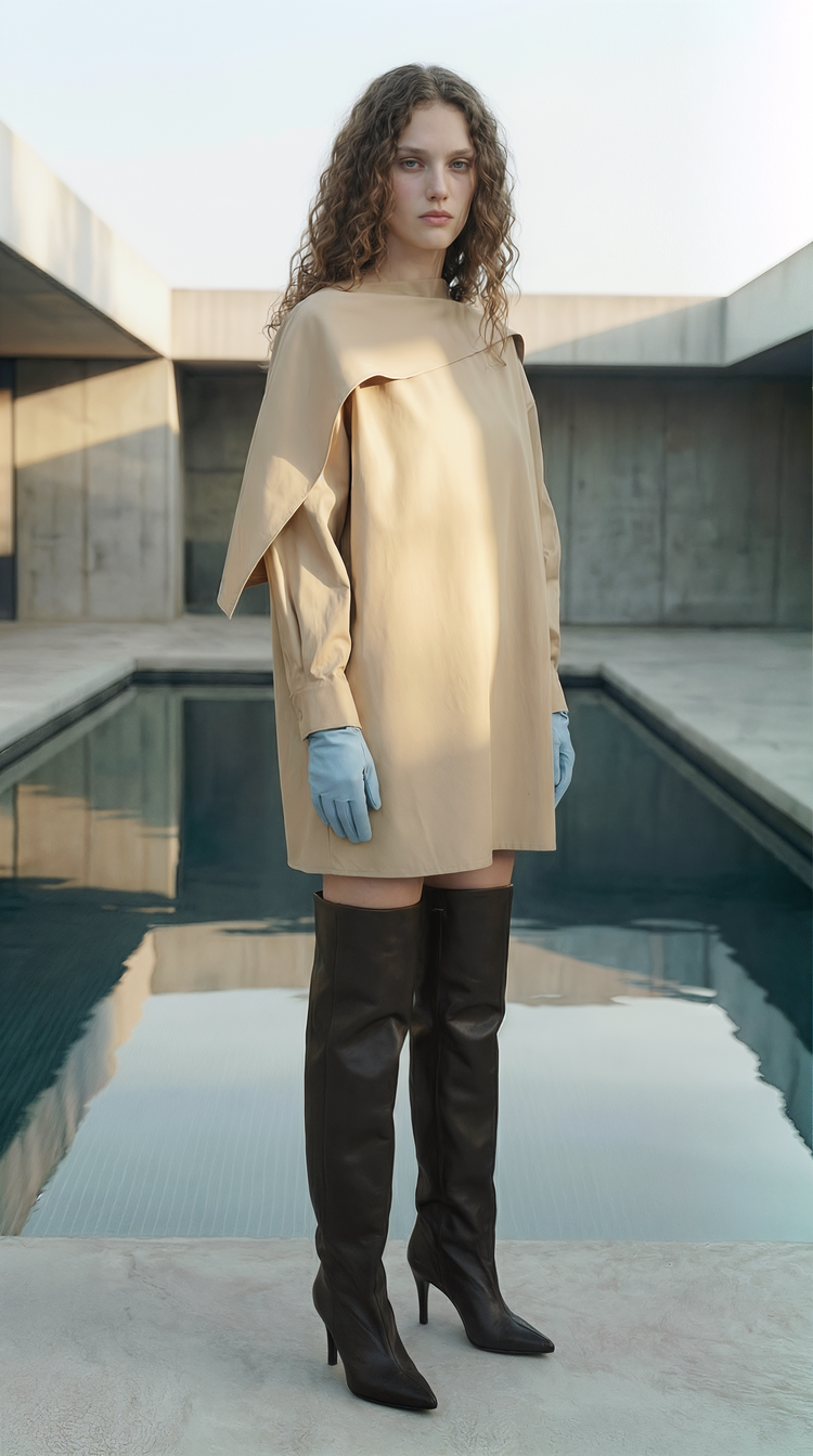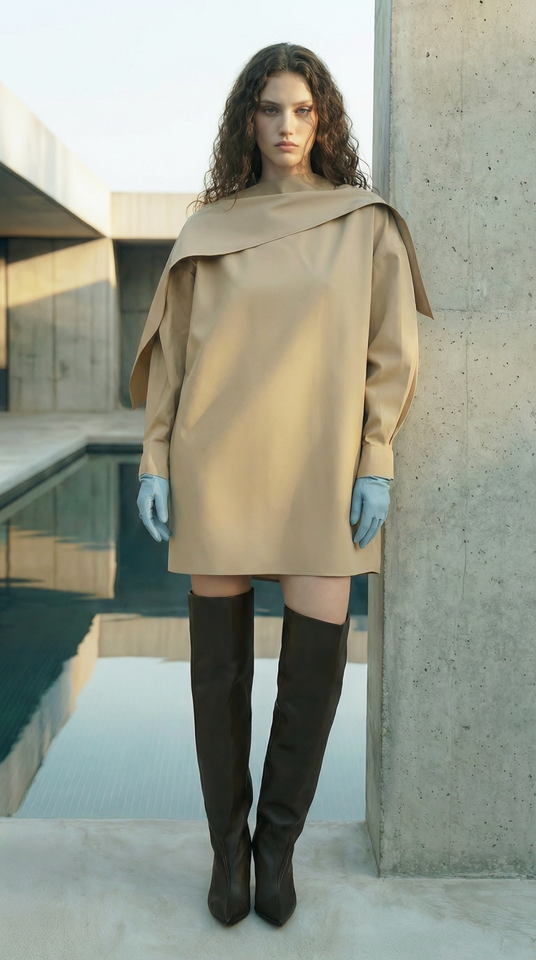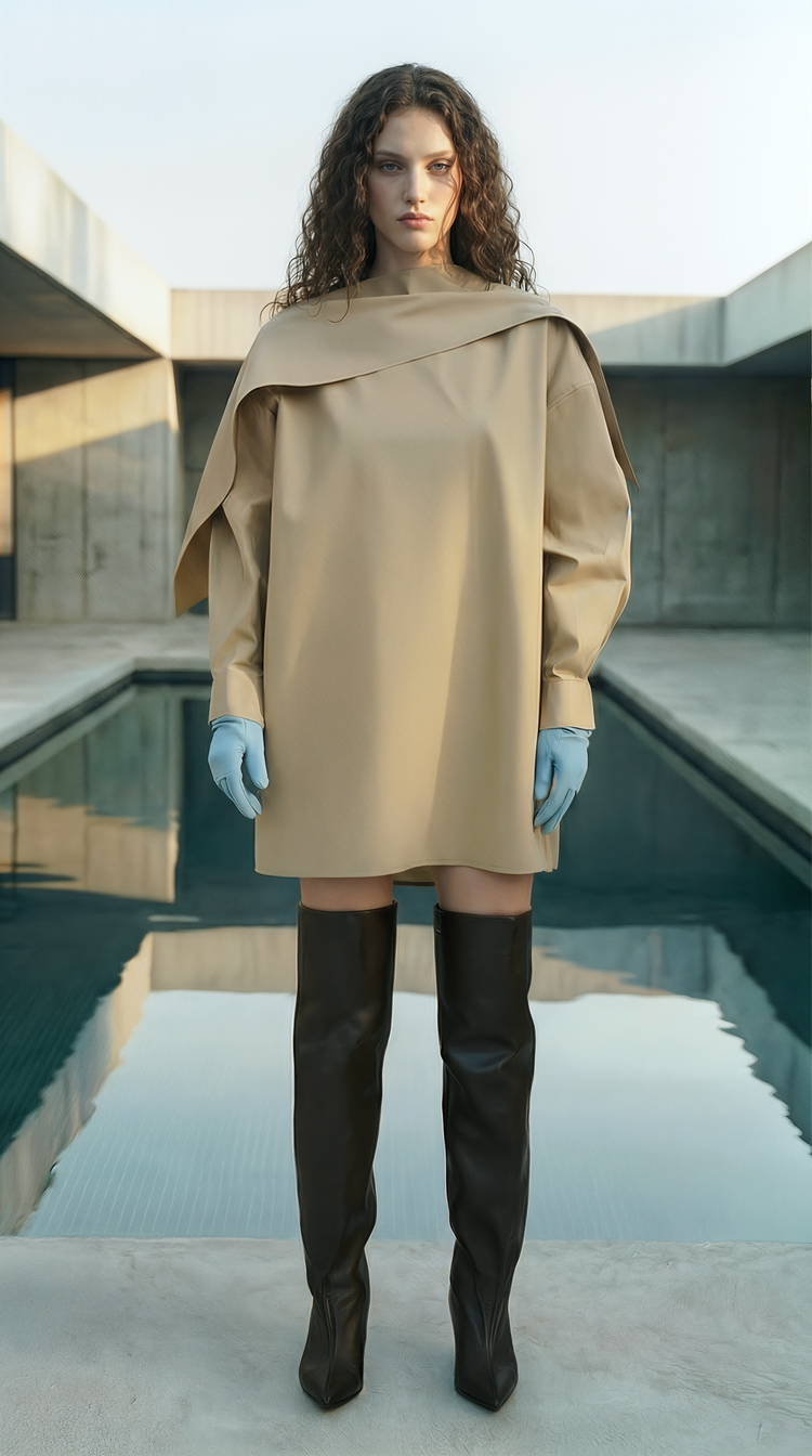 EKHON TWO-WAY BLOUSE DRESS BEIGE