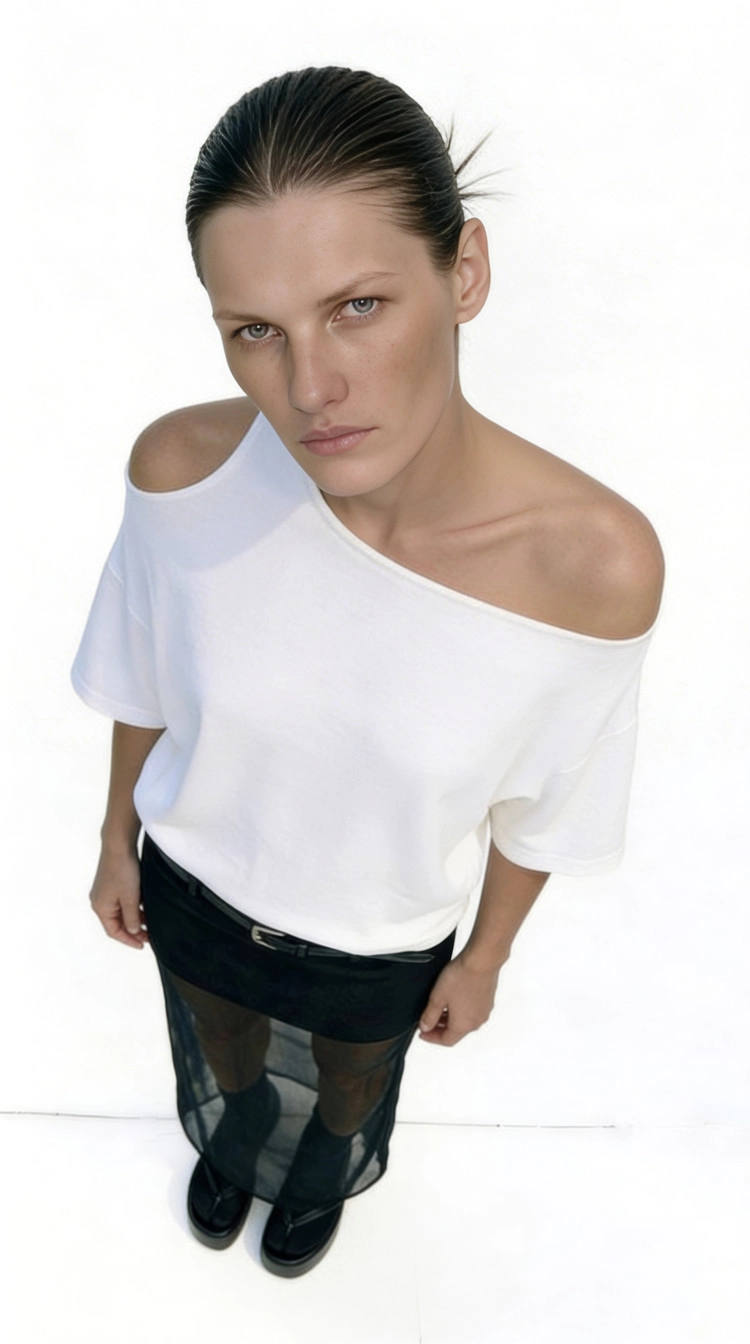 A modern skirt with minimal cutting and layering.