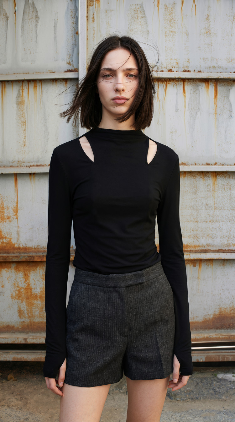 Minimal and stylish three-dimensional draping knit top.